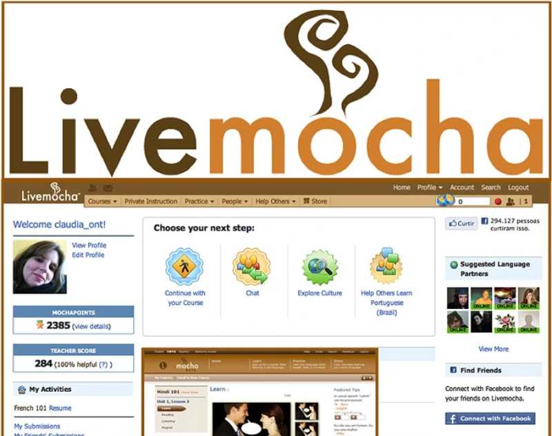 Đây là một website rất phổ biến với người học tiếng Anh, hiện nay có đến hơn 14 triệu người trên thế giới đang sử dụng trang web này để học. Không chỉ có tiếng Anh, Livemocha còn mở rộng chương trình với gần 20 loại tiếng khác nhau như: tiếng Anh, tiếng Ý, tiếng Brazil,... Không cần đăng ký tài khoản, bạn vẫn có thể sử dụng ngay với một số thao tác cơ bản và dễ dàng thực hiện. Vào bài học, ứng dụng sẽ hướng dẫn bạn từ các bài học cơ bản nhất như các từ vựng hay mẫu câu thường dùng trong chào hỏi, học bảng chữ cái, cấu trúc ngữ pháp căn bản,... và được minh họa thông qua những bài ghi âm đã có sẵn, việc bạn cần làm là bấm vào nút nghe và lặp lại để có thể học dễ dàng hơn. Ngoài ra, trang web còn hỗ trợ 1 số video để bạn có thể tham khảo nữa đó.